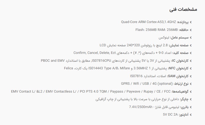 نوع ارتباط : GPRS / Wifi / USB / 4G (optional)