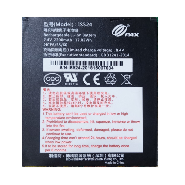 این باطری از نوع LI-ION لیتیوم سری IS524 بوده و ظرفیت آن 2300 میل آمپر 17 ah می باشد . این باطری مناسب جهت استفاده در دستگاه کارتخوان سیار D210g است .